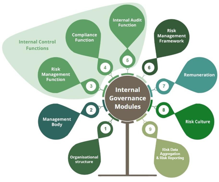 The IGRM assessment covers nine modules: organisational structure, management body (MB)[1], risk management function, compliance function, internal audit function, risk management framework, remuneration, risk culture, and risk data aggregation and risk reporting.