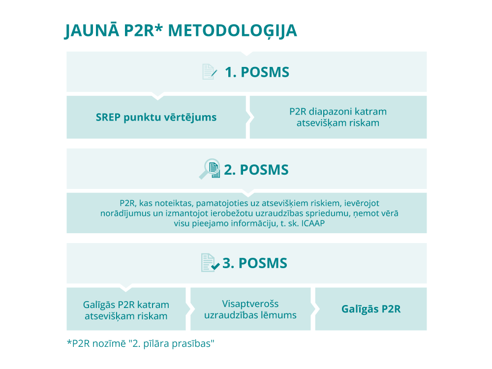 1. posma mērķis ir sasaistīt 2. pīlāra kapitāla prasības un SREP novērtējumu.