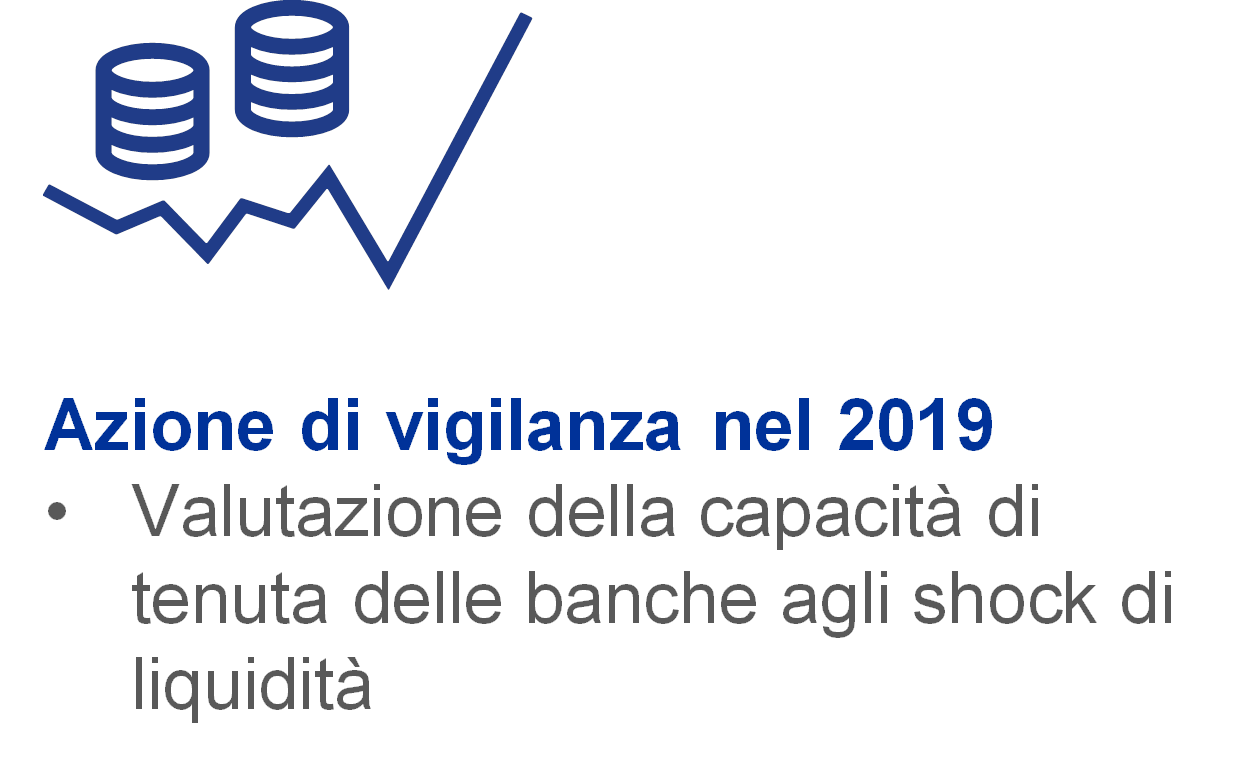 Come per il 2017, la prova di stress di vigilanza annuale del 2019 sarà caratterizzata da un ambito di analisi specifico. L’esercizio sarà finalizzato a valutare la capacità di tenuta delle banche a fronte degli shock di liquidità. I risultati della prova di stress delle singole banche informeranno le valutazioni SREP.