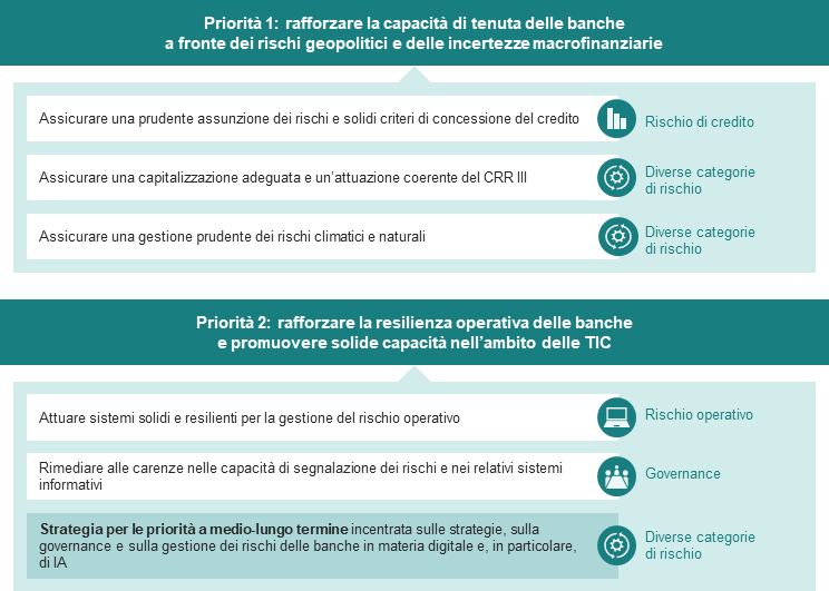 2.3.3 Strategia per le priorità a medio-lungo termine incentrata sulle strategie, sulla governance e sulla gestione dei rischi delle banche in materia digitale e, in particolare, di IA