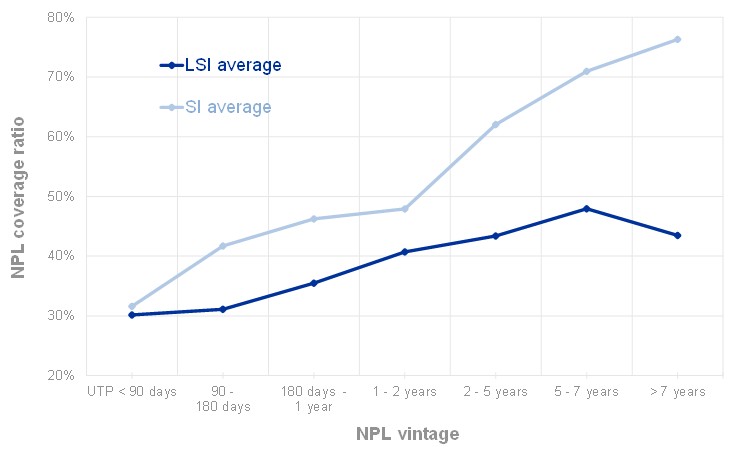 NPL vintage versus coverage for less significant institutions and significant institutions