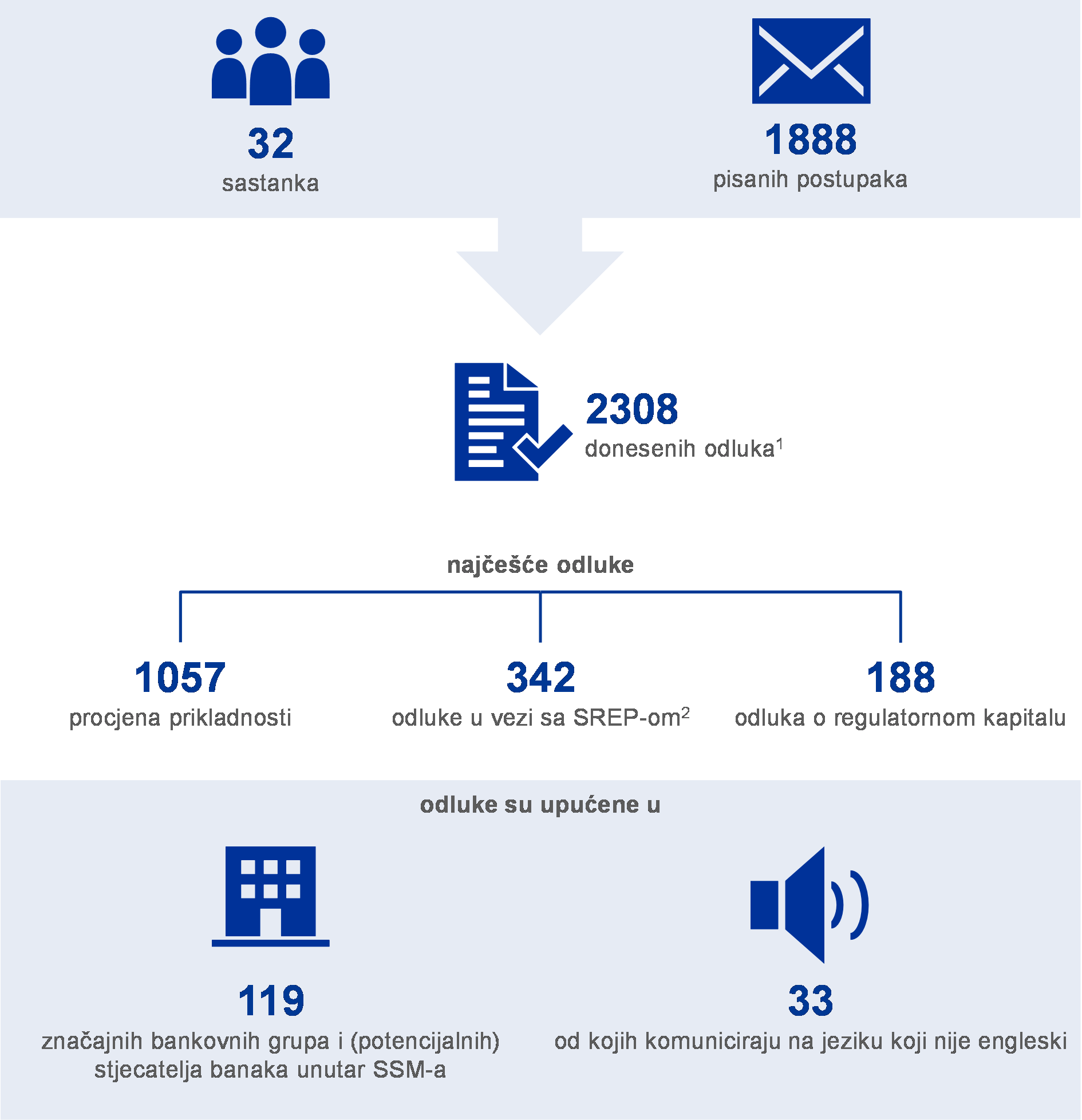 - Tih 1673 postupaka odobrenja uključeno je u 1238 pravnih akata ESB-a. Neki pravni akti obuhvaćaju više od jednog postupka odobrenja (npr. procjene sposobnosti i primjerenosti nekoliko članova upravljačkih tijela iste značajne institucije ili stjecanja kvalificiranih udjela u različitim društvima kćerima na temelju jedne transakcije).