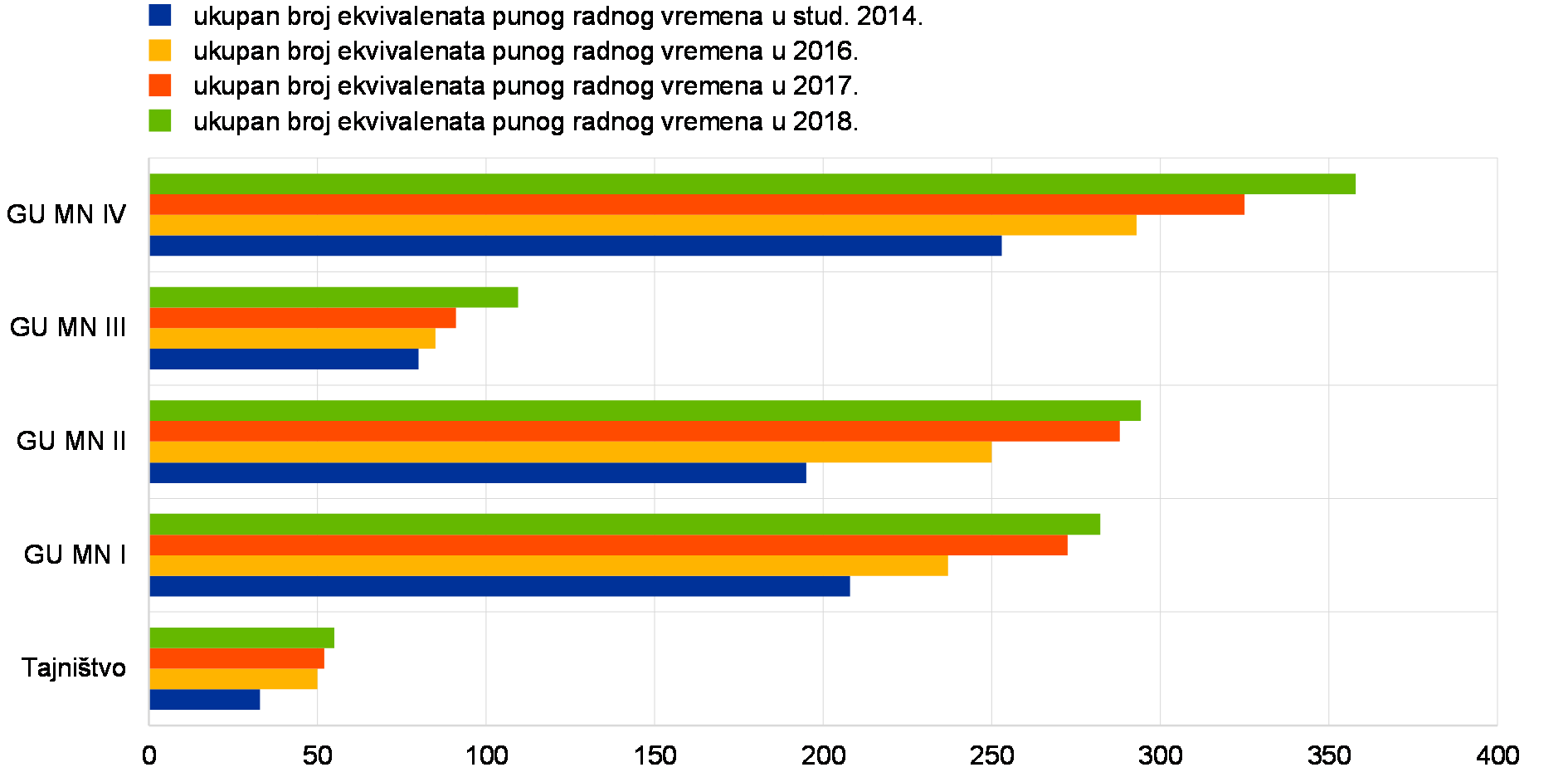 - Udio nadzora kreditnog rizika od 2016. do 2017. povećao se za osam postotnih bodova, a zahtjevi se sve više usredotočuju na preglede kreditnih spisa, koji zahtijevaju dosta vremena. Trajanje terenskih istraživanja na licu mjesta za nadzore kreditnog rizika u prosjeku je za oko trećinu dulje od ukupnog prosjeka.