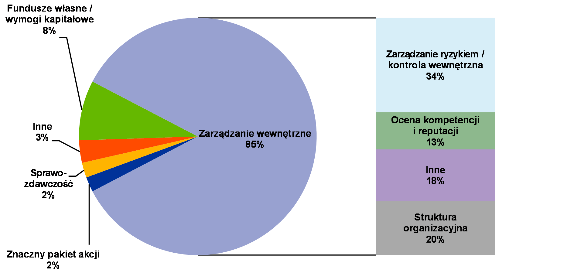 - Kategoria „zarządzanie ryzykiem / kontrola wewnętrzna” obejmuje rozwiązania i procedury, jakie dany podmiot musi wprowadzić dla zapewnienia odpowiedniej identyfikacji istniejącego lub potencjalnego ryzyka i zarządzania nim, a także sprawozdawczości w tym zakresie. Kategoria „struktura organizacyjna” odnosi się do stopnia zdefiniowania, przejrzystości i spójności struktury podległości służbowej.