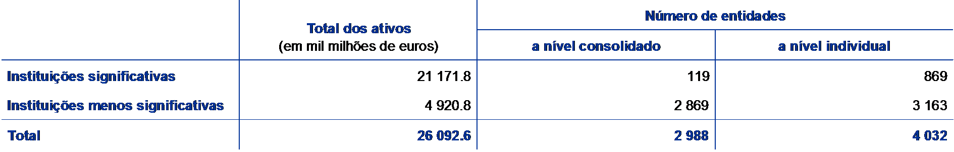 - Número de entidades supervisionadas significativas à data de 5 de dezembro de 2017. A lista de entidades supervisionadas é atualizada regularmente e publicada no sítio do BCE dedicado à supervisão bancária.