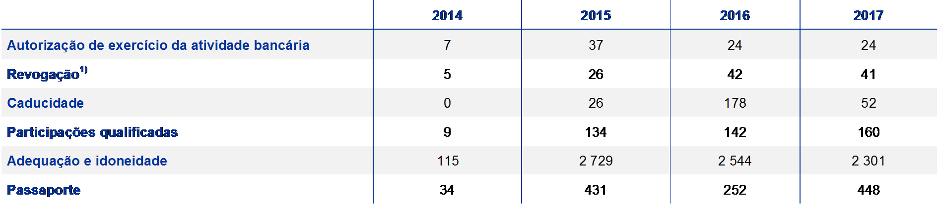 - Estes 1673 procedimentos de autorização foram incorporados em 1238 atos jurídicos do BCE. Alguns atos jurídicos contemplam mais do que um procedimento de autorização (por exemplo, avaliações da adequação e idoneidade de vários membros dos órgãos de administração da mesma entidade supervisionada significativa ou aquisições de participações qualificadas em diferentes filiais que resultem de uma única transação).