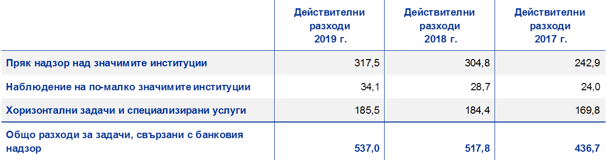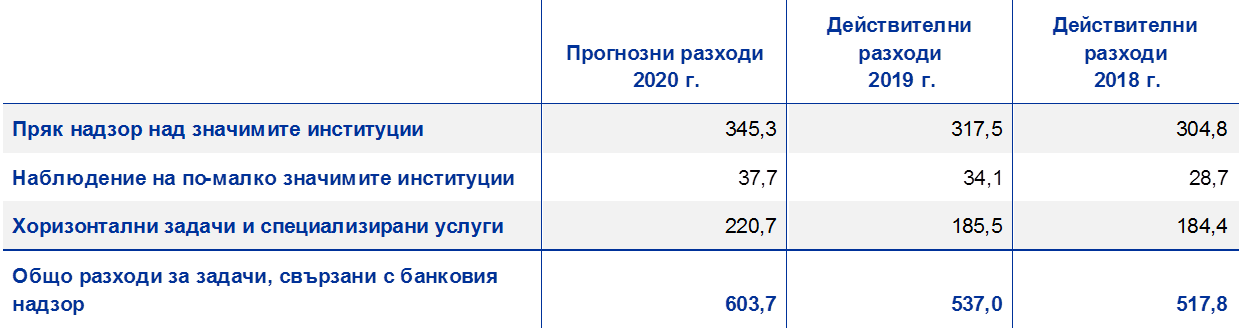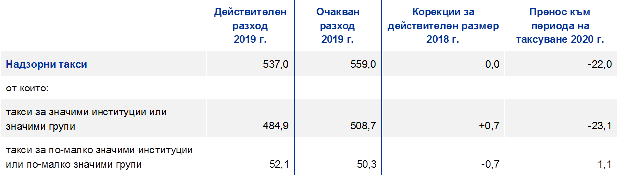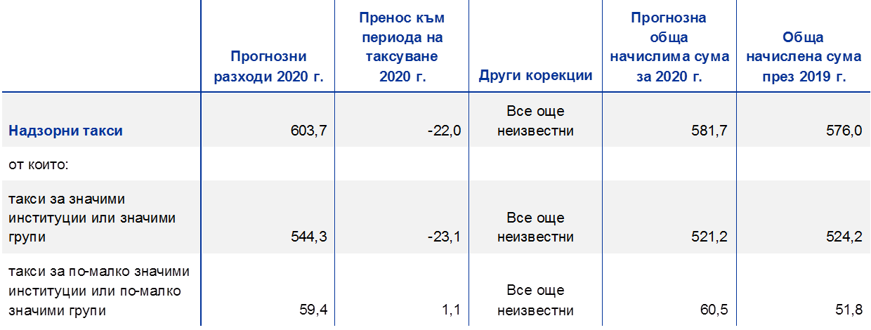 - От периода на таксуване 2020 г. надзорните такси на ЕЦБ ще бъдат изчислявани на базата на действителните годишни разходи, т.е. след приключването на периода на таксуване. Вижте раздел 6.2 за повече информация относно промените в рамката за надзорните такси.