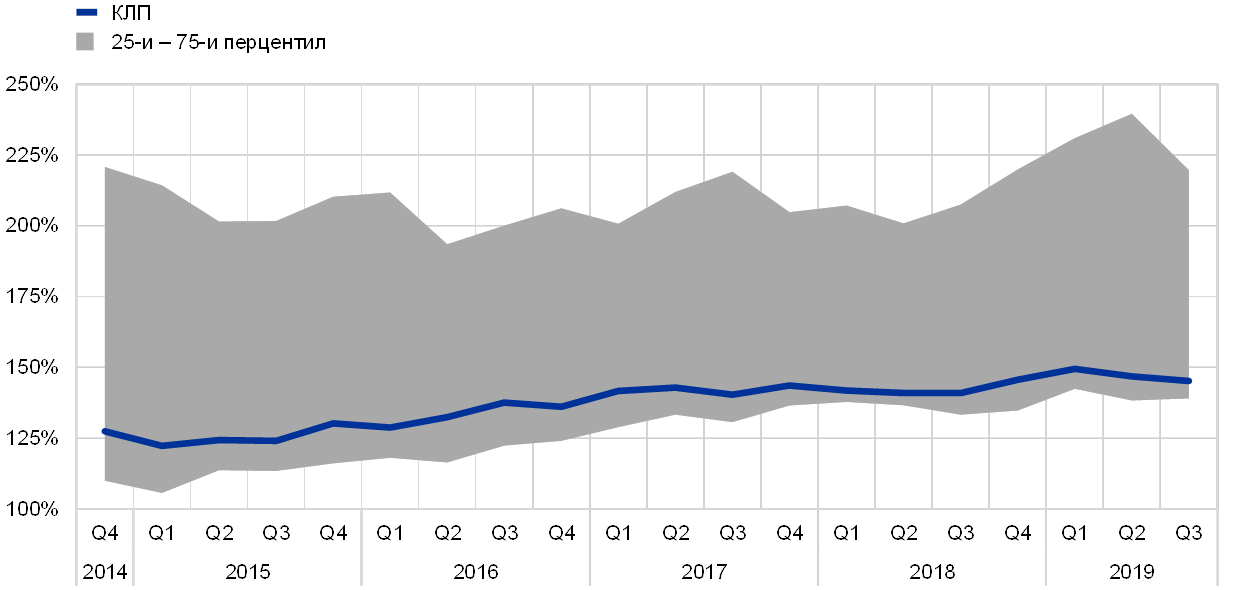 Забележки: Графиката се основава на променяща се извадка от по-малко значими институции. Данните за първото и второто тримесечие на 2019 г. са анюализирани с използване на последните четири тримесечия.