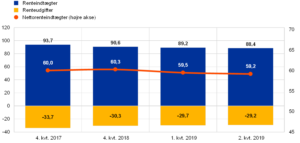 De signifikante institutters rentabilitet faldt i 2. kvartal 2019, mens forholdet mellem omkostninger og indtægter stadig var forholdsvis højt