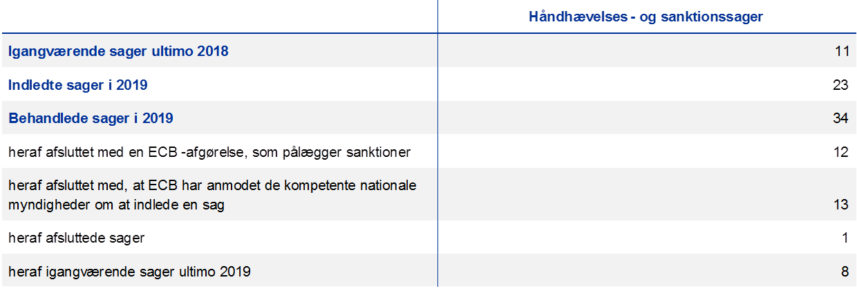 - Ud over disse tilsynsafgørelser har ECB også implicit godkendt 205 operationer (fx etablering af filialer) ved ikke at gøre indsigelse inden for de lovbestemte frister. Heraf blev 103 godkendt af den øverste ledelse inden for rammen for delegation.