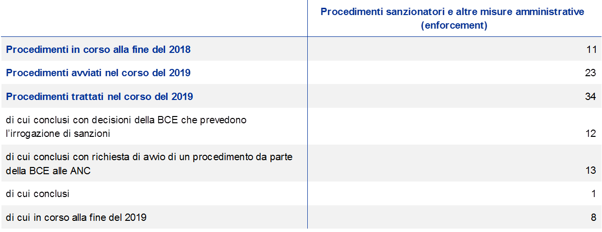 - Cfr. la sezione 2.2 per ulteriori informazioni su procedure sanzionatorie e altre misure amministrative.