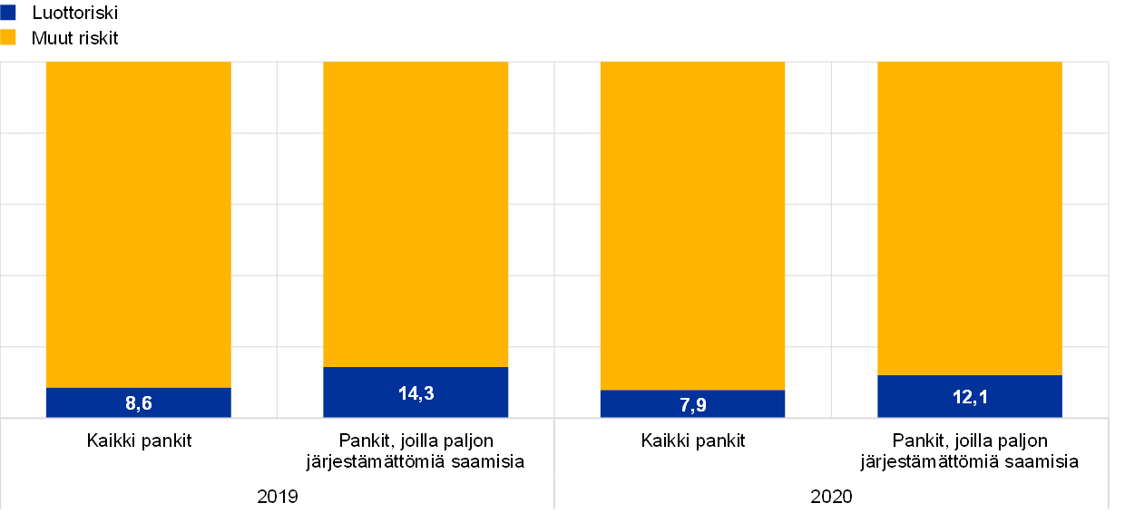 Pandemiakriisi on lisännyt järjestämättömien saamisten kertymisen riskiä, koska pankkien taseisiin kirjattujen varojen laatu on heikentynyt. Järjestämättömien saamisten suuri määrä euroalueella oli pankkivalvonnan huolenaiheena jo ennen pandemian puhkeamista, ja nyt lisäriskinä on, että julkisten tukitoimien päättyminen laukaisee äkillisiä, vakavia haittavaikutuksia.
