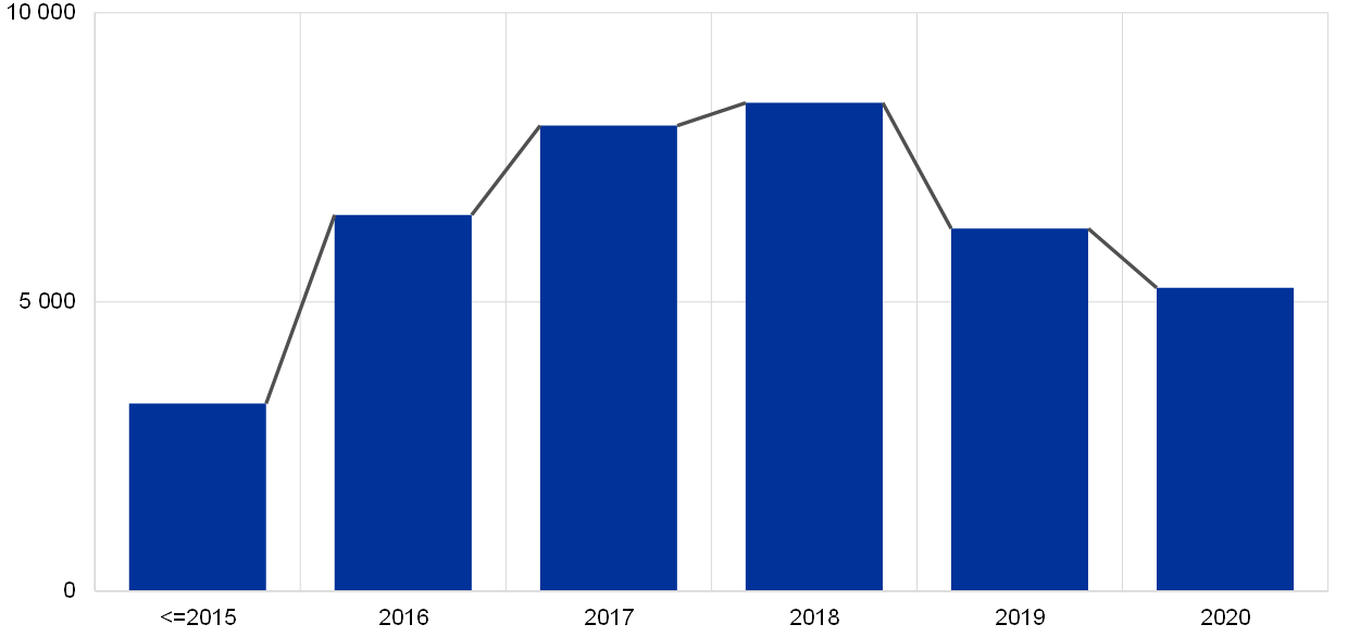 - Ks. ”Trends and risks in credit underwriting standards of significant institutions in the Single Supervisory Mechanism – main findings from the credit underwriting data collection 2019”, EKP, kesäkuu 2020.