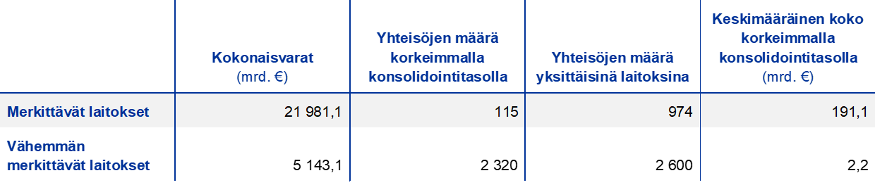 - Joulukuussa 2020 julkaistuun merkittävien ja vähemmän merkittävien laitosten luetteloon vaikuttivat ennen 30.11.2020 laitoksille ilmoitetut merkittävyyspäätökset sekä ennen 1.11.2020 voimaan tulleet ryhmärakenteen muutokset ja muut muutokset.