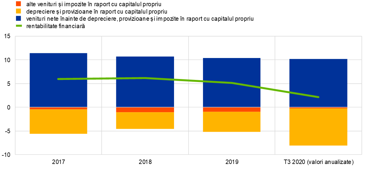 Indicatorul agregat al efectului de levier s-a dovedit, de asemenea, solid pe parcursul pandemiei, situându-se la 5,6% în trimestrul III 2020, comparativ cu 5,7% la sfârșitul anului 2019. Totuși, riscurile la adresa adecvării capitalului se pot materializa în bilanțurile băncilor doar mai târziu și ar putea fi amplificate de efectele de deteriorare abruptă care rezultă din expirarea măsurilor de sprijin introduse în 2020, cum ar fi moratoriile, schemele de suspendare temporară a contractului individual de muncă, garanțiile guvernamentale și alte dispoziții tranzitorii de reglementare.[2]