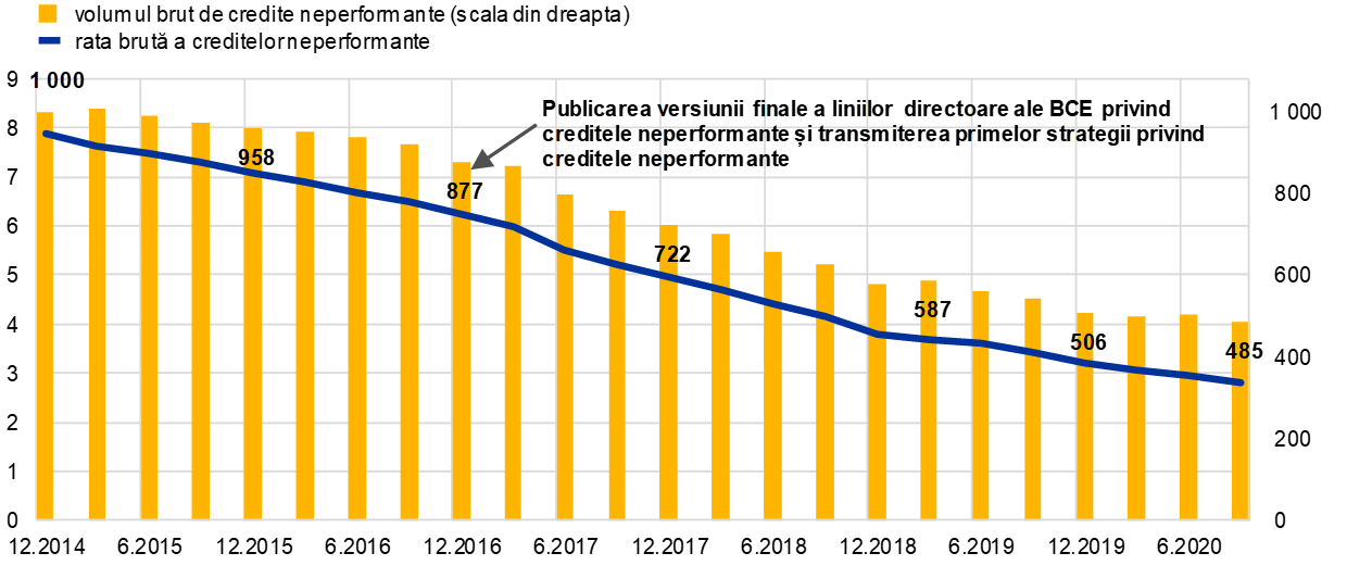 Criza generată de COVID-19 a accentuat riscul acumulării în continuare de credite neperformante ca urmare a deteriorării calității activelor din bilanțurile băncilor. La începutul anului 2020 – așadar, înainte de criza COVID-19 –, nivelul agregat ridicat al creditelor neperformante din zona euro fusese deja identificat ca un motiv de preocupare din perspectiva supravegherii, la acesta adăugându-se acum un risc suplimentar de manifestare a unor efecte grave de deteriorare abruptă odată ce măsurile de sprijin public încep să expire.