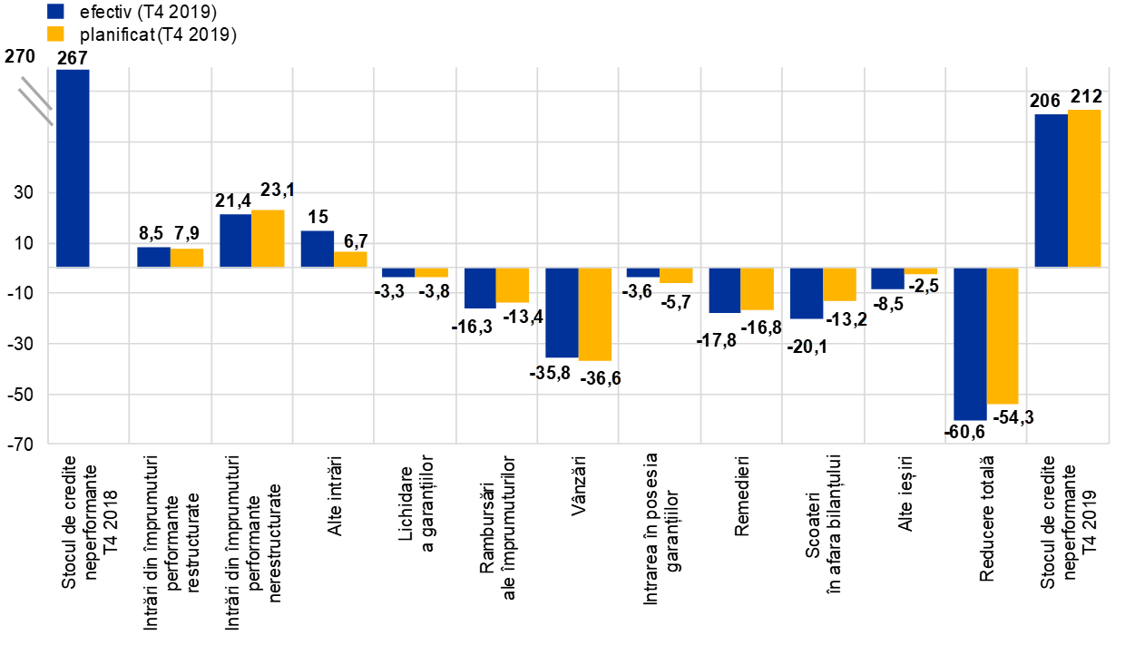 Măsurile extraordinare introduse pentru a relaxa condițiile de finanțare și a sprijini gospodăriile, întreprinderile mici și corporațiile au contribuit, de asemenea, la menținerea volumului global de credite neperformante din bilanțurile băncilor la niveluri, în linii mari, stabile pe parcursul întregului an. Cu toate acestea, se estimează o creștere a volumului de credite neperformante în viitor, pe fondul expirării măsurilor de sprijin. În acest context, Supravegherea bancară a BCE a subliniat, în comunicările sale din iulie și decembrie[4], că este esențial ca băncile să ofere în timp util soluții adecvate debitorilor viabili aflați în dificultate și, astfel, să contribuie la limitarea acumulării de active problematice în cadrul băncilor și la reducerea la minimum a efectelor de deteriorare abruptă acolo unde este posibil. În acest scop, băncile ar trebui să se asigure că riscul este evaluat, clasificat și măsurat în mod adecvat în bilanțurile lor. Acestea ar trebui să dispună de practici eficiente de gestionare a riscurilor pentru a identifica, a evalua și a pune în aplicare soluții care să poată sprijini în cel mai bun mod acești debitori, protejând totodată băncile împotriva oricăror efecte negative ale riscului de credit. În același timp, băncile ar trebui să gestioneze în continuare cu eficacitate stocul de credite neperformante care exista deja înainte de declanșarea pandemiei.