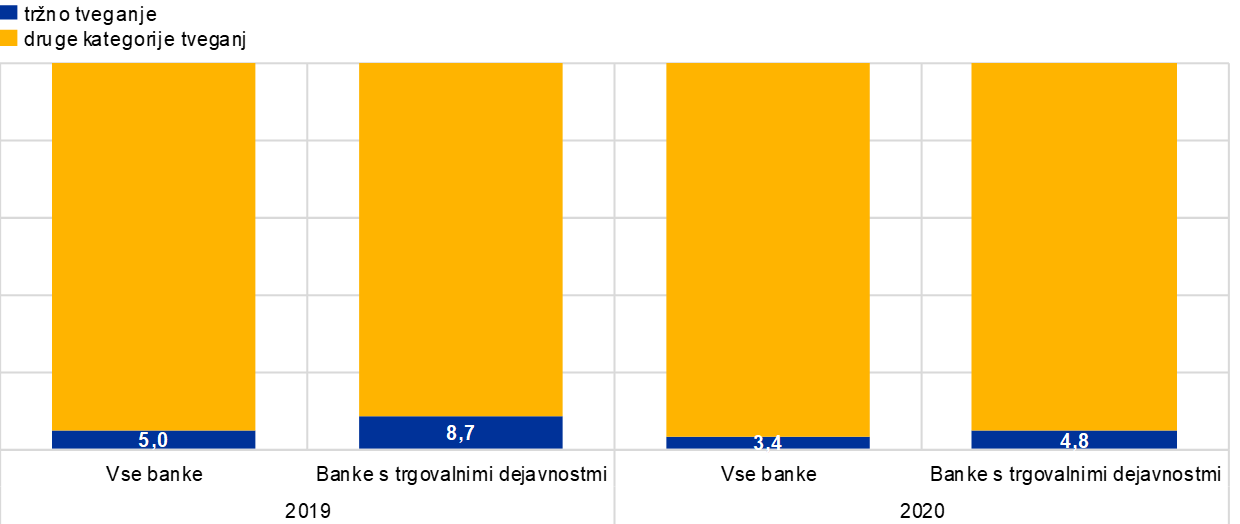 Zaradi izbruha pandemije COVID-19 v Evropi in ZDA so strmo upadli tečaji delnic, volatilnost se je silovito okrepila, razmiki pri državnih in podjetniških obveznicah pa so se ves marec povečevali. To je negativno vplivalo ne le na bilance bank, ampak tudi na njihove kapitalske zahteve za tržno tveganje, ki temeljijo na notranjih modelih, ter na njihove preudarne prilagoditve vrednotenja (zlasti za negotovost tržnih cen in tveganje modela), ki so korelirane z nedavno volatilnostjo. V odziv na šok so bili sprejeti nadzorni ukrepi za omejitev procikličnih učinkov krize na kapitalske zahteve za tržno tveganje in prilagoditve vrednotenja (npr. izključitev nekaterih primerov prekoračitve pri povratnem testiranju notranjih modelov, povečanje koristi diverzifikacije za preudarne prilagoditve vrednotenja). Pritisk je še dodatno popustil, ko so se v drugem in tretjem četrtletju izboljšale tržne razmere.