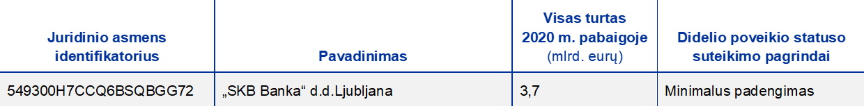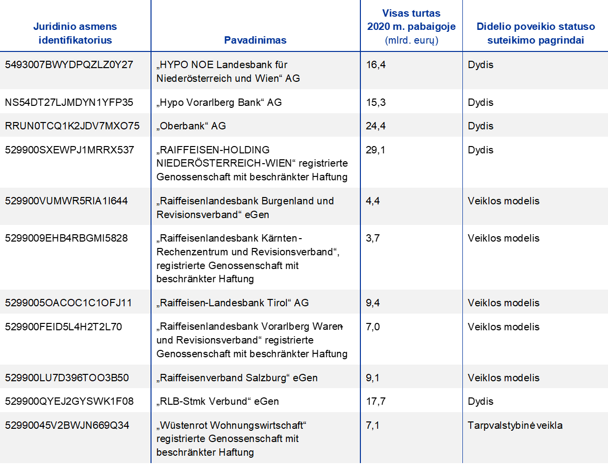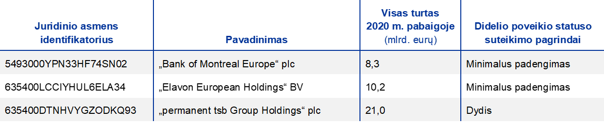 Pastaba: į imtį įtrauktos visos svarbios įstaigos aukščiausiu konsolidavimo lygmeniu Bendrame priežiūros mechanizme (kintanti imtis).