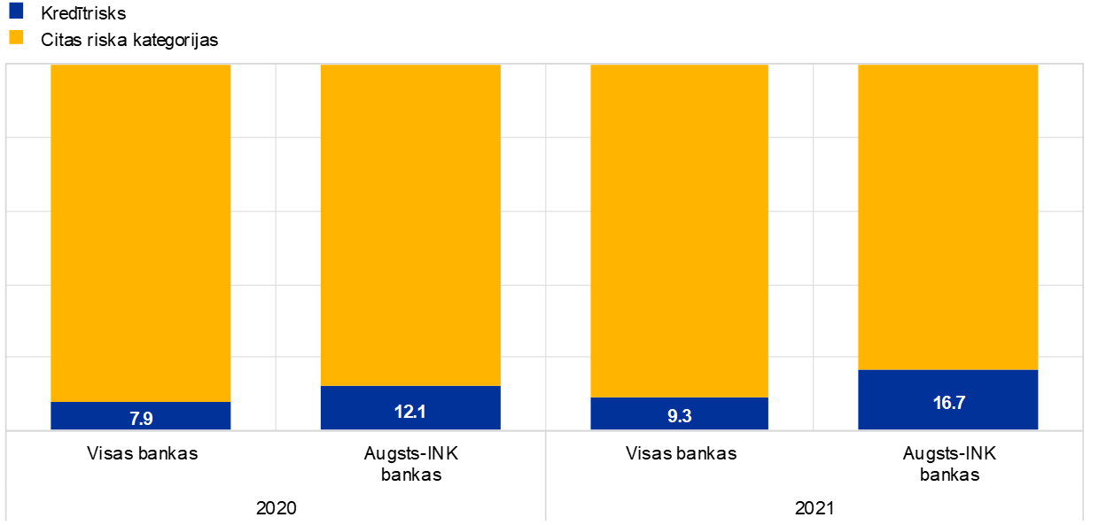Neraugoties uz ārkārtējām operacionālām un uzņēmējdarbības nepārtrauktības nodrošināšanas problēmām, ar kurām bankas saskārušās kopš pandēmijas sākuma, ar pandēmiju saistītā operacionālā riska zaudējumu apjoms 2021. gadā bija ievērojami mazāks nekā 2020. gadā. Tas atbilst gaidītajam, ka operacionālā riska zaudējumi, kas saistīti ar Covid-19, galvenokārt var rasties pandēmijas sākumposmā, jo šie zaudējumi ietver būtiskus vienreizēja rakstura elementus.[3]