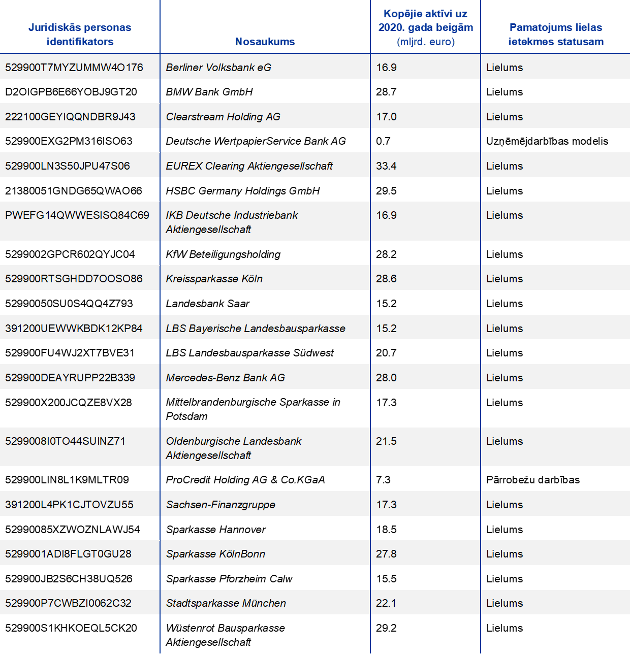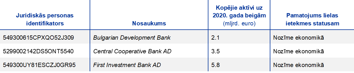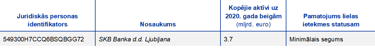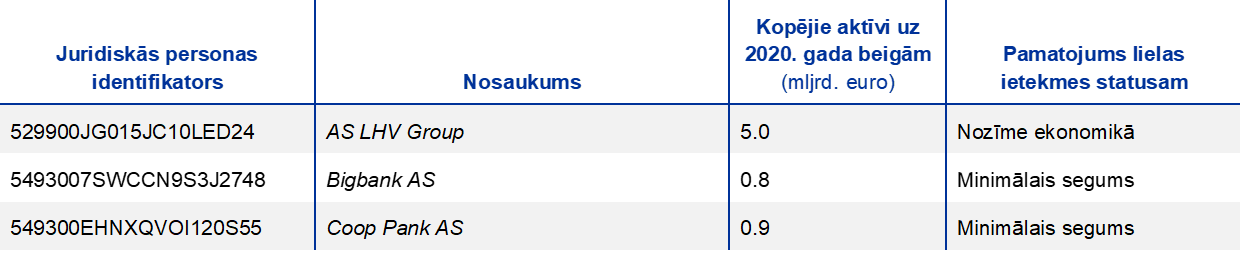 Piezīme. Izlasē ir iekļautas visas nozīmīgās iestādes, kas vienotā uzraudzības mehānisma ietvaros ir augstākajā konsolidācijas līmenī (atšķirīga izlase).