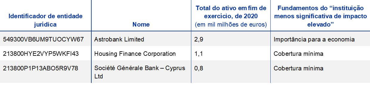 - A lista de instituições significativas e de instituições menos significativas publicada em dezembro de 2021 reflete: i) as decisões relativas ao caráter significativo notificadas às entidades supervisionadas antes de 30 de novembro de 2021 e ii) outras mudanças e desenvolvimentos em estruturas de grupo anteriores a 1 de novembro de 2021.