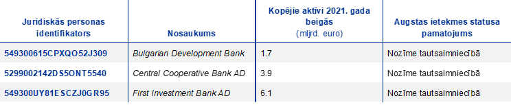 2022. gada 21. decembrī publicētais nozīmīgo un mazāk nozīmīgo iestāžu saraksts atspoguļo 1) lēmumus par nozīmīgumu, kas tika paziņoti uzraudzītajām iestādēm līdz 2022. gada 30. novembrim, un 2) citas pārmaiņas un jaunāko informāciju par norisēm grupu struktūrā, kas bija spēkā līdz 2022. gada 1. novembrim.