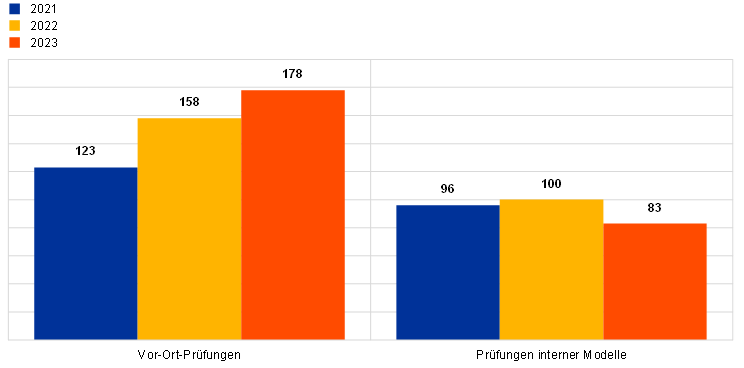 Die EZB bewertet und überwacht fortlaufend die sich verändernden Risiken und Schwachstellen der beaufsichtigten Institute. Dieser agile Ansatz ermöglicht es der EZB, ihren Fokus flexibel auf den Wandel der Risikolandschaft abzustimmen. Der im Berichtsjahr von verschiedenen Zentralbanken eingeleitete geldpolitische Straffungszyklus verdeutlichte, wie wichtig es für die Banken ist, ihre Zinsänderungs- und Kreditspreadrisiken im Anlagebuch (IRRBB/CSRBB) mit Augenmaß zu steuern. Des Weiteren passte die EZB ihre Aufsichtsprioritäten nach den Marktturbulenzen im Frühjahr 2023 und dem Ausfall einiger mittelgroßer Banken in den Vereinigten Staaten an und bezog eine größere Gruppe von Kreditinstituten in ihre gezielte Überprüfung der Zinsänderungs- und Kreditspreadrisiken im Anlagebuch ein. Gleichzeitig führte sie Ad-hoc-Analysen durch, um potenzielle, durch unrealisierte Verluste in den Bilanzen der Banken bedingte Schwachstellen zu ermitteln. Daneben sahen sich die Aufsichtsbehörden aufgrund des erhöhten Risikos im Gewerbeimmobiliengeschäft dazu veranlasst, bestimmte Vor‑Ort-Prüfungen zu repriorisieren. Ziel war es, die Maßnahmen der Institute zur Risikosteuerung und ‑minderung bei einigen der in diesem Sektor tätigen risikofreudigeren Geschäftspartner zu bewerten.