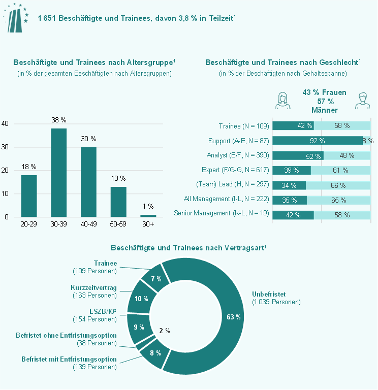 Die Aufteilung der Kosten im Zusammenhang mit Querschnitts- und Expertenaufgaben erfolgt nach deren jeweiligen Anteilen an den Gesamtkosten für die Aufsicht über SIs und den Kosten für die Überwachung (Oversight) von LSIs. Die in der Tabelle ausgewiesenen Kategorien enthalten auch die Kosten für die von den Supportbereichen der EZB erbrachten gemeinsamen Dienste.