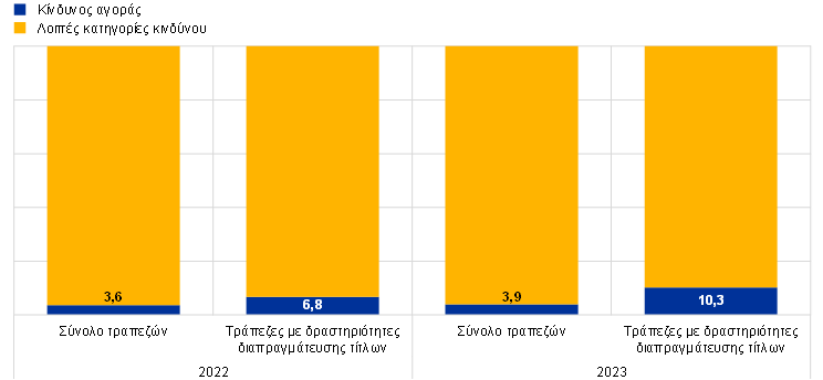 Περαιτέρω, η EBA και η ΕΚΤ πραγματοποίησαν έκτακτη συλλογή δεδομένων για την ολοκληρωμένη αξιολόγηση των κινδύνων που σχετίζονται με τις μη πραγματοποιηθείσες ζημίες στα χαρτοφυλάκια ομολόγων των τραπεζών με βάση το αναπόσβεστο κόστος και τη σχετική αντιστάθμιση κινδύνων. Το ύψος των μη πραγματοποιηθεισών ζημιών στα χαρτοφυλάκια ομολόγων των τραπεζών της ζώνης του ευρώ έχει περιοριστεί συνολικά και διαμορφώθηκε σε 73 δισεκ. ευρώ τον Φεβρουάριο του 2023, αφού ληφθούν υπόψη οι θέσεις αντιστάθμισης μεταβολών της εύλογης αξίας. Αν δεν ληφθούν υπόψη, το δυσμενές σενάριο της πανευρωπαϊκής άσκησης προσομοίωσης ακραίων καταστάσεων προβλέπει πρόσθετες ζημίες ύψους 155 δισεκ. ευρώ. Εντούτοις, το ενδεχόμενο αυτές οι μη πραγματοποιηθείσες ζημίες να μετατραπούν σε πραγματοποιηθείσες θα πρέπει να θεωρηθεί υποθετικό και όχι πιθανό, δεδομένου ότι τα χαρτοφυλάκια των τραπεζών που αποτιμώνται στο αναπόσβεστο κόστος εξ ορισμού σχεδιάστηκαν για να διακρατούνται έως τη λήξη τους και οι τράπεζες καταφεύγουν συνήθως σε συμφωνίες επαναγοράς ή σε άλλα μέτρα περιορισμού των ζημιών προτού ρευστοποιήσουν τις θέσεις τους σε ομόλογα. Η ΕΚΤ δημοσίευσε τα αποτελέσματα λογιστικής αξίας και εύλογης αξίας για αυτά τα χαρτοφυλάκια ομολόγων των επιμέρους τραπεζών με ημερομηνία αναφοράς τον Φεβρουάριο του 2023.
