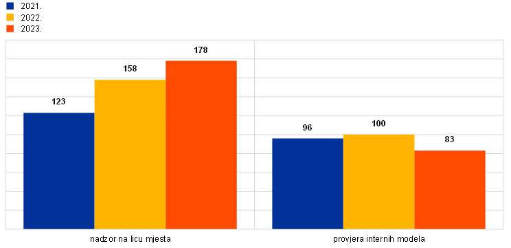 Za više pojedinosti vidi „Internal models supervision: where do we stand?”, ESB‑ov Bilten nadzora banaka, ESB, kolovoz 2023.