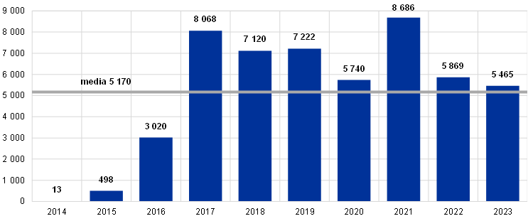 A se vedea „Written overview ahead of the exchange of views of the Chair of the Supervisory Board of the ECB with the Eurogroup on 15 May 2023”, BCE, 2023, și „Written overview ahead of the exchange of views of the Chair of the Supervisory Board of the ECB with the Eurogroup on 8 November 2023”, BCE, 2023.