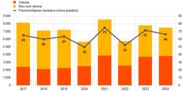 Yhteiseen pankkivalvontaan osallistuvien pankkien kannattavuus on parempi kuin matalien korkojen jaksolla ennen vuoden 2022 puoliväliä. Vuonna 2024 korkokate pysyi ennallaan, ja palkkiotulot puolestaan kasvoivat. Varainhankintakustannusten nousupaineet vähenivät korkojen laskun myötä. Talletuskorkojen nousu katkesi, kun ohjauskorkoja laskettiin kesäkuussa 2024. Kaiken kaikkiaan korkokulut pysyivät edelleen suurina, kun erääntyvien lainojen korkotaso nousi uudelleenrahoituksen yhteydessä.