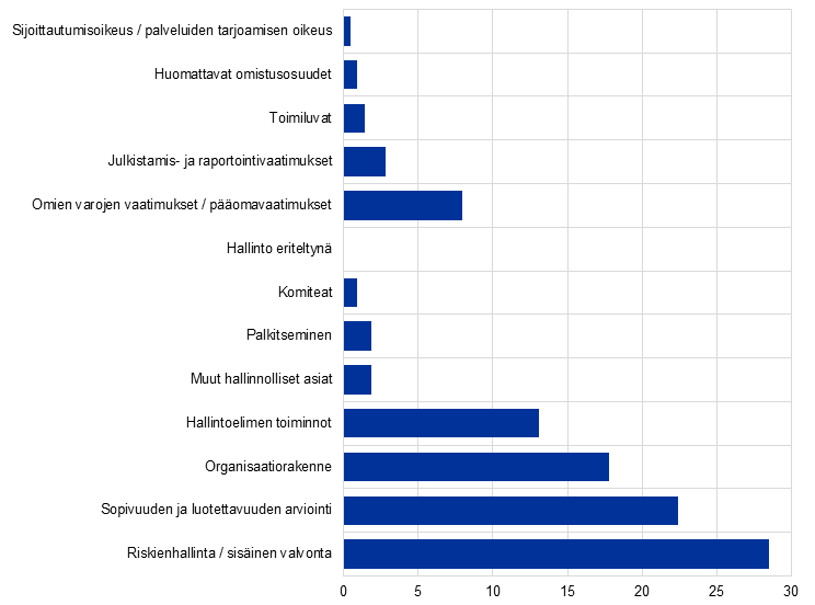 Luvut perustuvat EKP:n keräämiin tietoihin pankkien ylimpien hallintoelinten kokoonpanosta ja niiden jäsenten osaamisesta, riippumattomuudesta ja taustasta.