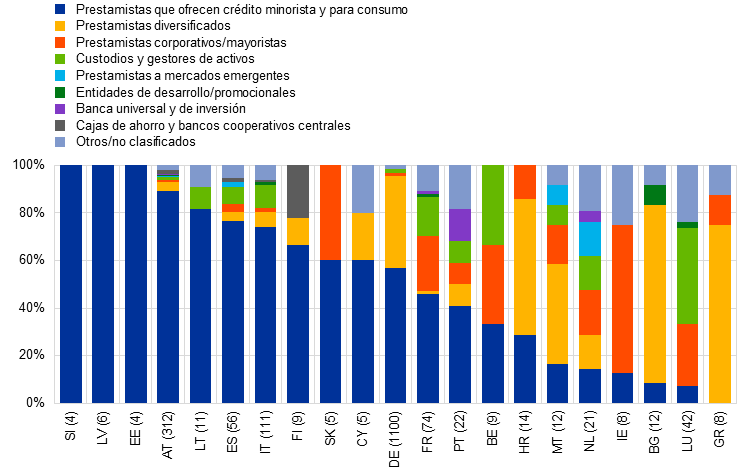 En el sector inmobiliario comercial, los índices de sentimiento y las métricas agregadas de la calidad de los activos apuntaban a una estabilización de los mercados de la zona del euro pese a los factores adversos en el segmento del espacio de oficinas. Las ratios de préstamos en stage 2 de las carteras del sector de inmuebles comerciales descendieron 1,74 puntos porcentuales en tasa interanual y se situaron en el 17,8 %. Sin embargo, en algunos países los préstamos dudosos de las carteras de pymes y del sector inmobiliario comercial registraron incrementos significativos, lo que subraya la necesidad de continuar con el escrutinio de estos segmentos.