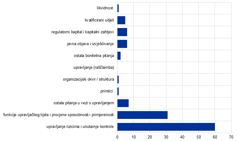 Bez obzira na vrstu rizika koja se provjerava, najveći broj nalaza bio je u kategorijama „opis modela”, „procesi” i „validacija”.