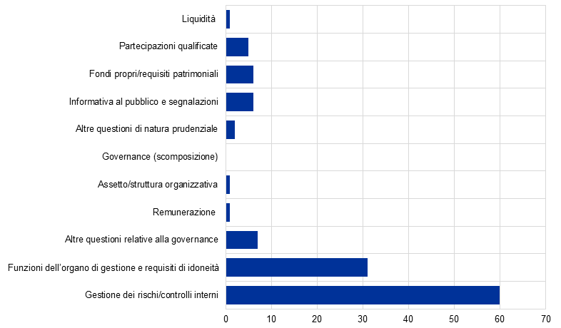 Indipendentemente dalla tipologia di rischio oggetto di indagine, il numero più alto di rilievi ha riguardato le seguenti categorie: “descrizione del modello”, “processi” e “convalida”.