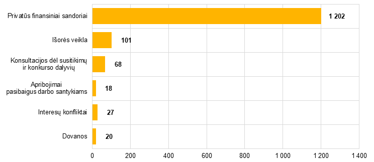 Į šį skaičių neįtraukti kompetencijos ir tinkamumo vertinimai, kurie atliekami priimant sprendimus dėl licencijavimo ir kvalifikuotųjų akcijų paketų.