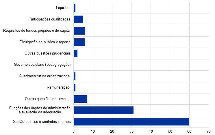 O BCE continuou a assegurar uma abordagem holística de questões relacionadas com a qualidade dos dados, incorporando as conclusões retiradas de outras atividades de supervisão na avaliação global das capacidades de agregação e reporte de dados sobre o risco por parte dos bancos. Essas conclusões prenderam‑se com, nomeadamente, a qualidade dos dados fornecidos para o exercício de curto prazo e os testes de esforço conduzidos pelo BCE, bem como com a agregação eficaz de posições em risco sobre o mercado de crédito privado. A fim de intensificar os esforços neste domínio, no início de janeiro de 2025, o BCE estabeleceu um quadro jurídico destinado a assegurar uma qualidade de dados adequada no reporte relacionado com testes de esforço[19]. Além disso e após um projeto‑piloto bem‑sucedido em 2023, o BCE continuou a produção do seu relatório relativo ao exercício anual de reporte sobre o governo e a qualidade dos dados pelos quadros de direção de topo dos bancos[20]. Em comparação com o exercício conduzido em 2024, em 2025, os quadros de direção de topo dos bancos estiveram mais envolvidos na resolução de deficiências identificadas, verificando‑se uma clara apropriação da gestão de projetos e assunção de responsabilidade pela mesma a nível dos órgãos de administração.