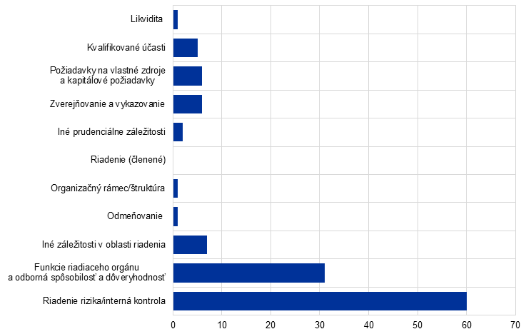 Bez ohľadu na druh skúmaného rizika bol najvyšší počet zistení zaznamenaný v kategóriách „opis modelu“, „procesy“ a „validácia“.