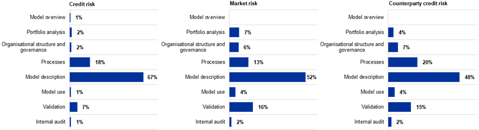 Regardless of the risk type investigated, the categories "model description", "processes" and "validation" contained the highest share of findings.