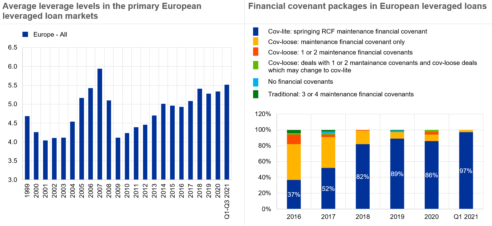 Sources left-hand chart: S&P Leveraged Commentary & Data (LCD), Q3 2021.