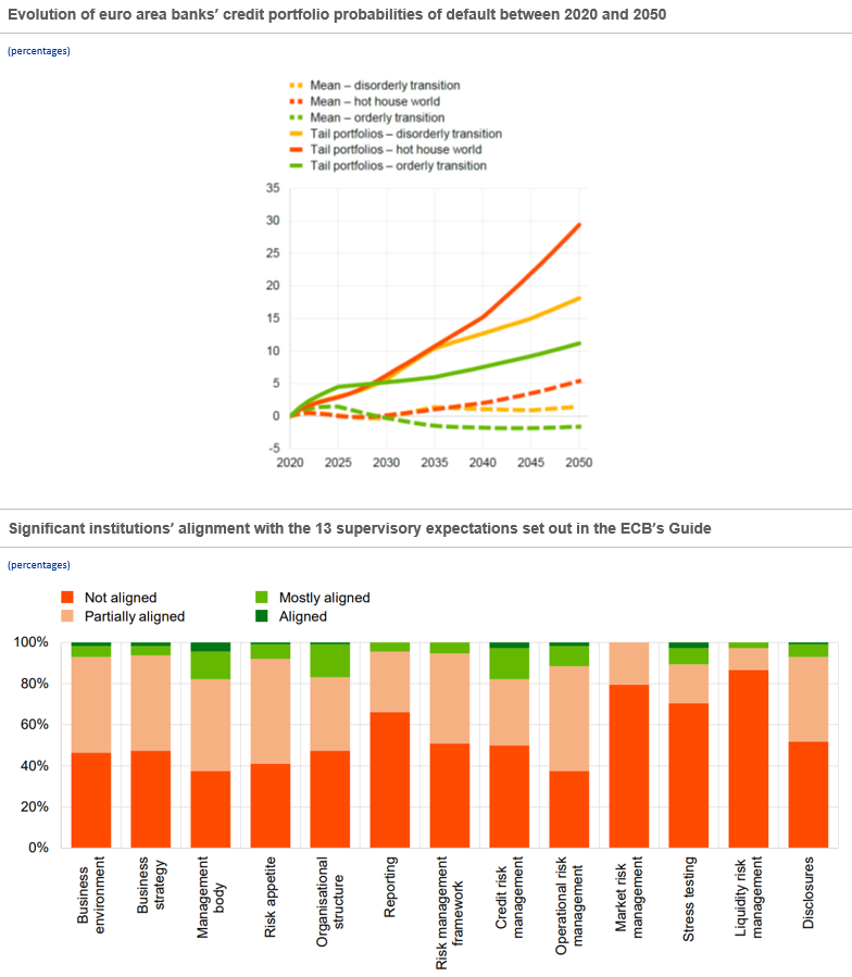 Sources right-hand chart: ECB Banking Supervision, “The state of climate and environmental risk management in the banking sector”, November 2021.
