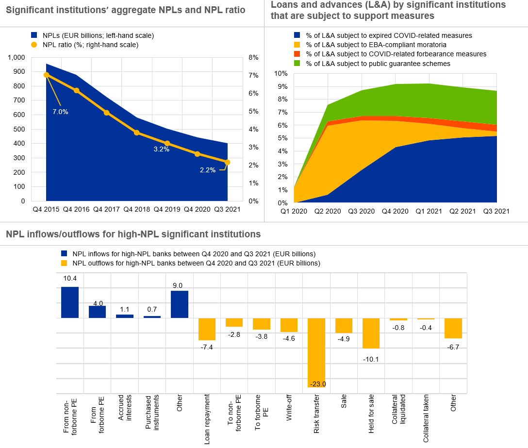Note bottom chart: This chart shows flows for high-NPL banks between Q4 2020 and Q3 2021. The sample for Q3 2021 comprises 23 SIs.