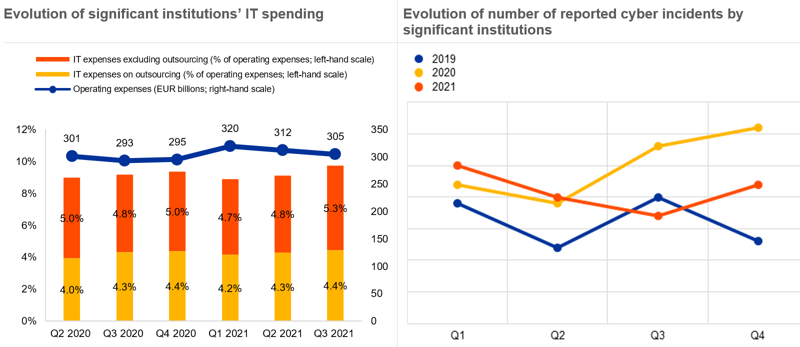 Sources right-hand chart: ECB cyber incident reporting and ECB calculations.