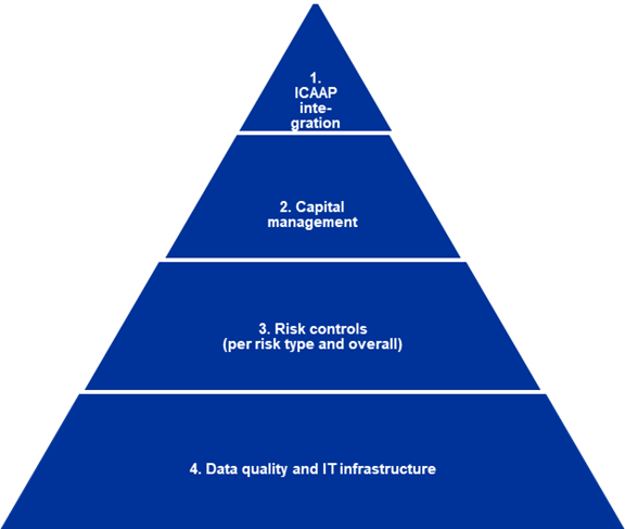 - ICAAP integration: ICAAP-related governance and controls, and their use in decision-making processes (e.g. defining strategies, making decisions on distributions)